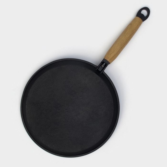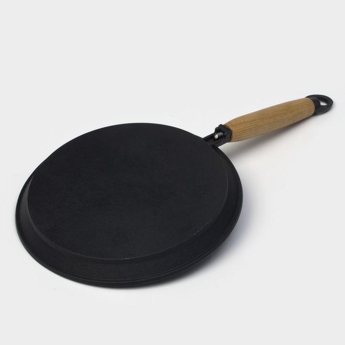 Сковорода блинная литая чугунная Magma, d=22 см, h=1.5 см, деревянная ручка, индукция