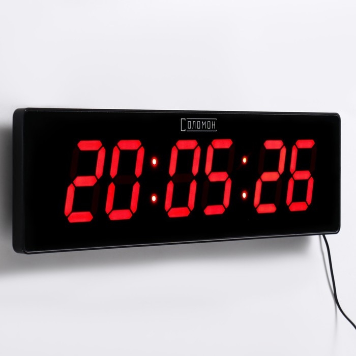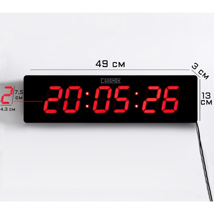 Часы электронные настенные "Соломон", 49 x 13 x 3 см, цифра 7.5 х 4.3 см, красная индикация