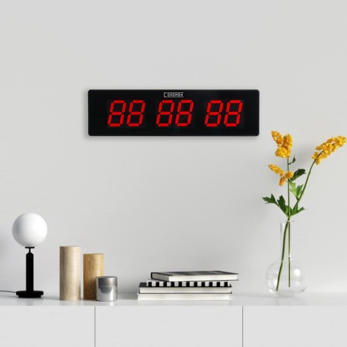 Часы настенные электронные "Соломон", 48 x 19 x 3 см, цифры красные 7.5 х 4 см