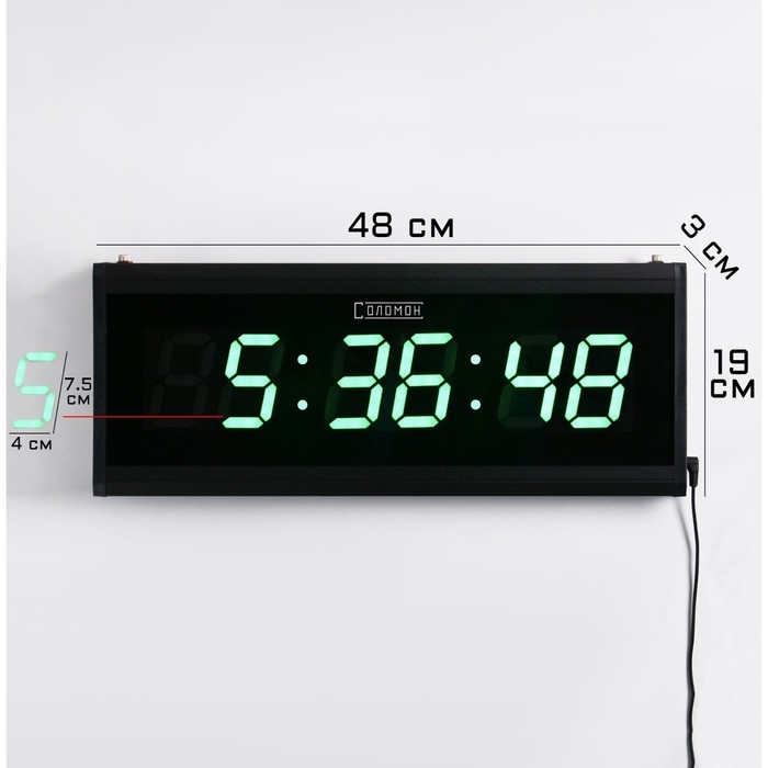 Часы электронные настенные "Соломон", 48 x 19 x 3 см, цифры зеленые 7.5 х 4 см