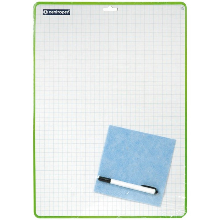 Доска маркерная A3 двусторонняя: без рисунка/клетка Centropen + маркер 7789, ткань для стирания