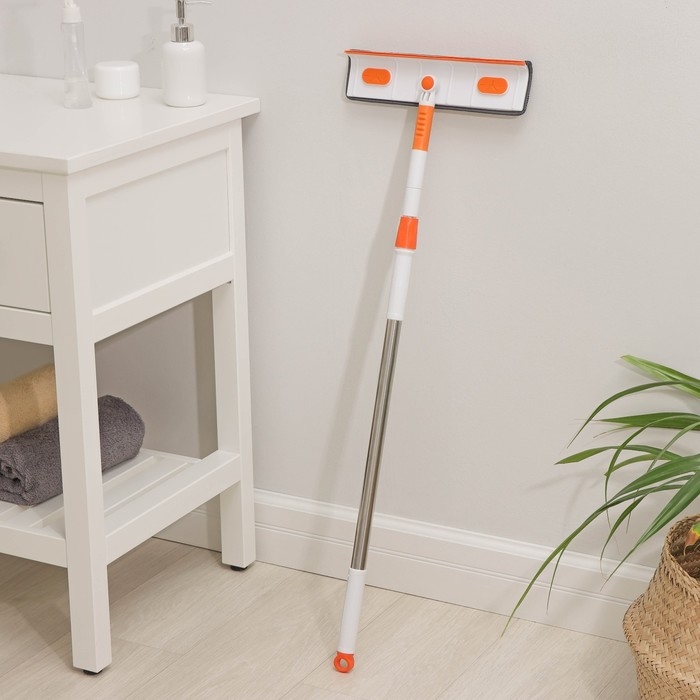 Окномойка с насадкой из микрофибры Raccoon, фиксатор, стальная телескопическая ручка, 28×7×85(120) см, цвет белый, оранжевый