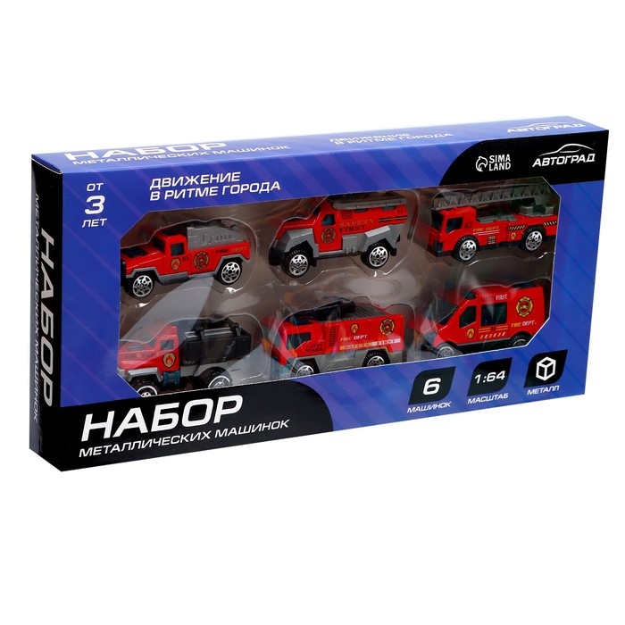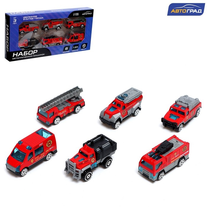 Набор металлических машин «Пожарная служба», 6 штук, масштаб 1:64