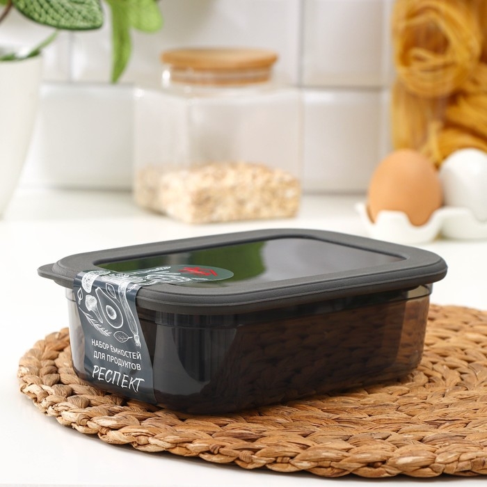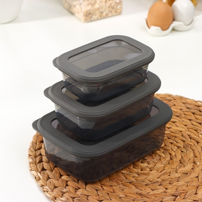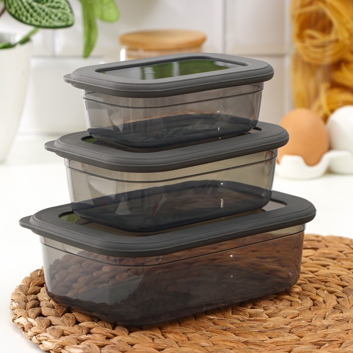 Набор пищевых контейнеров «Респект», 3 шт: 400 мл, 700 мл, 1.2 л, цвет прозрачный, крышка серая