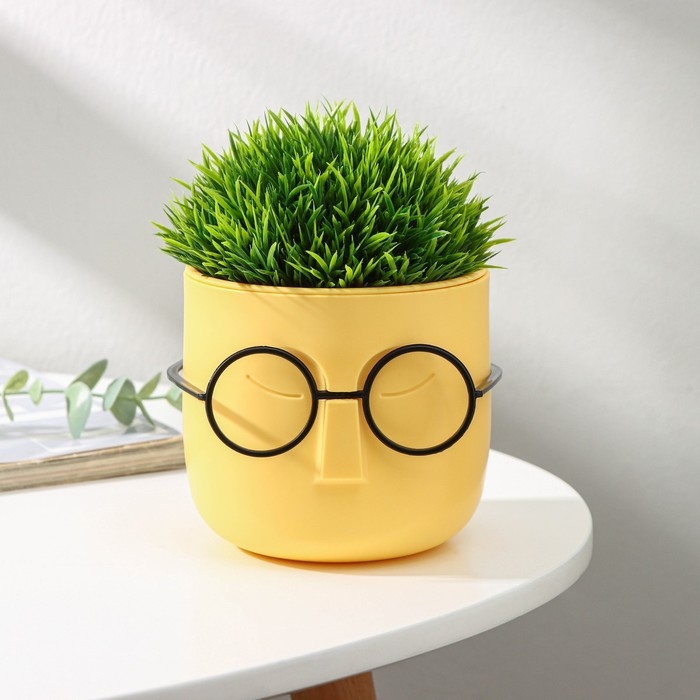 Кашпо для цветов со вставкой «Стив», 650 мл, d=11,5 см, h=10,5 см, цвет банановый