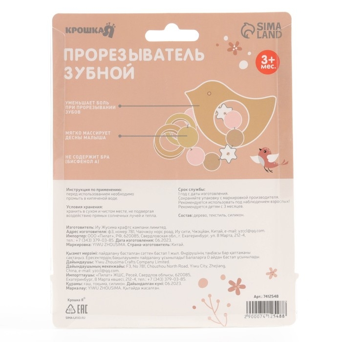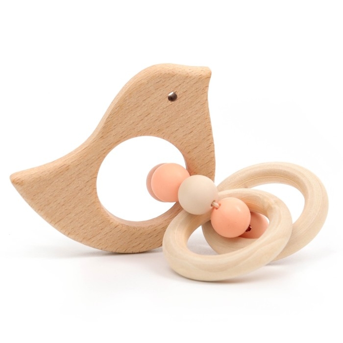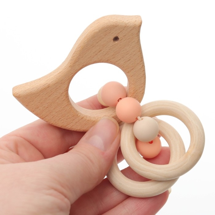 Прорезыватель для зубов «Bird» с эластичными и деревянными элементами