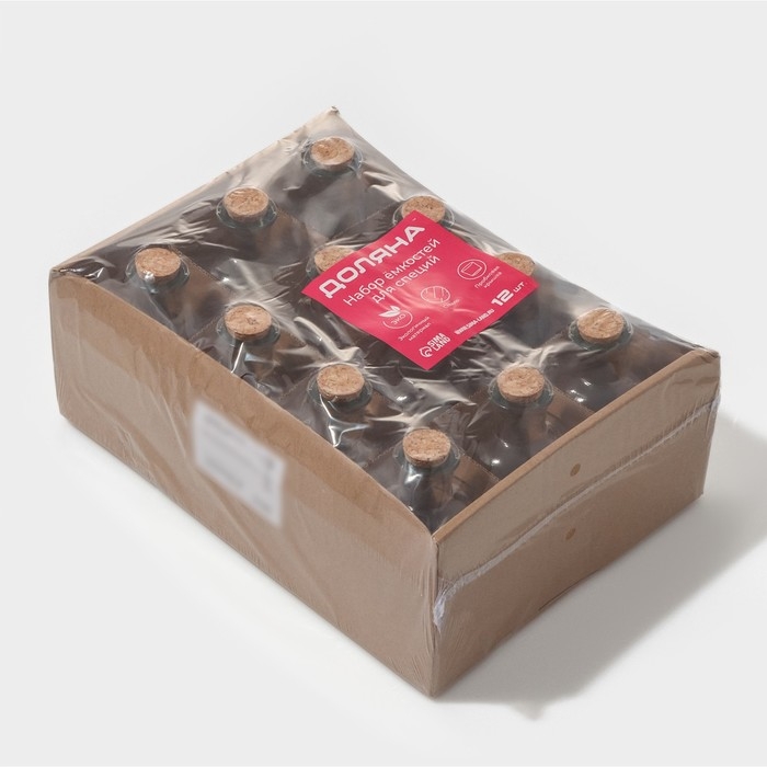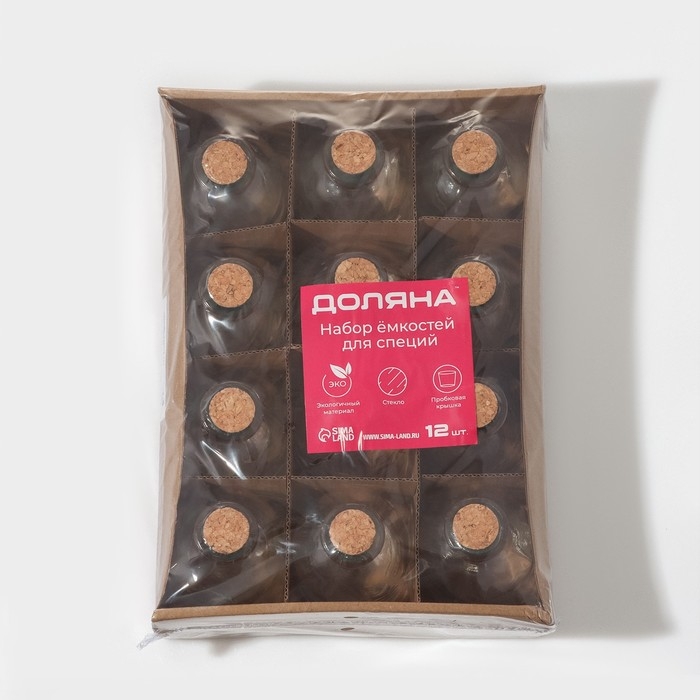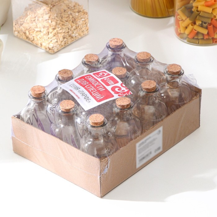 Набор стеклянных баночек для сыпучих продуктов с пробковой крышкой Доляна «Парфе», 125 мл, 5,8×10,4 см, 12 шт