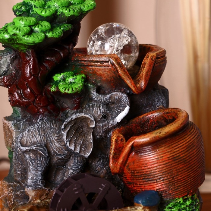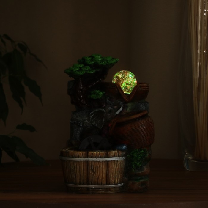 Фонтан "Слоник под деревом, кувшин и бочка" 10х14х19 см (с подсветкой)