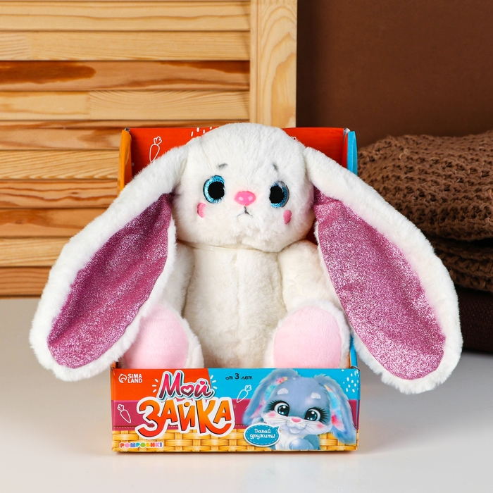 Мягкая игрушка «Зайчик», блестящие ушки, 25 см