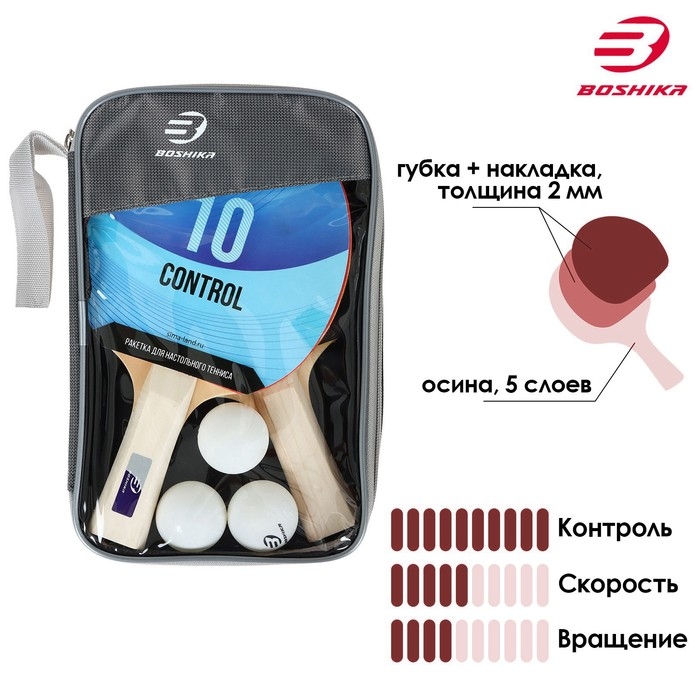 Набор для настольного тенниса BOSHIKA Control 10: 2 ракетки,3 мяча, губка 1.5 мм, коническая ручка