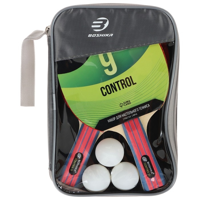 Набор для настольного тенниса BOSHIKA Control 9: 2 ракетки, 3 мяча, губка 1.8 мм, коническая ручка