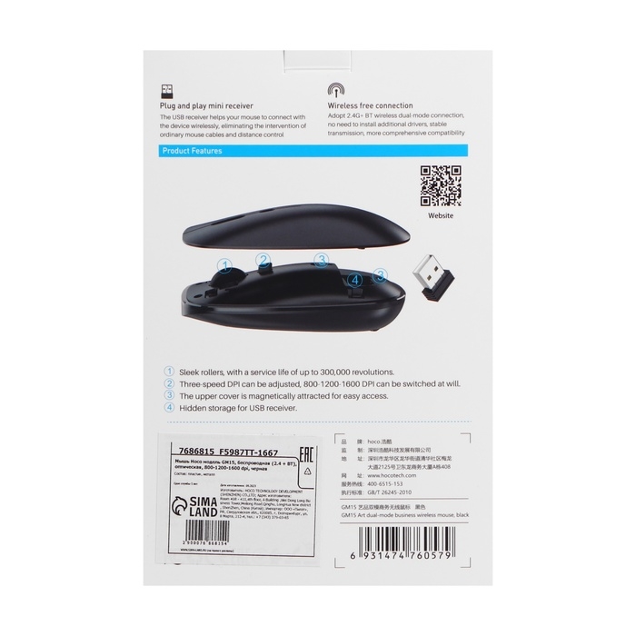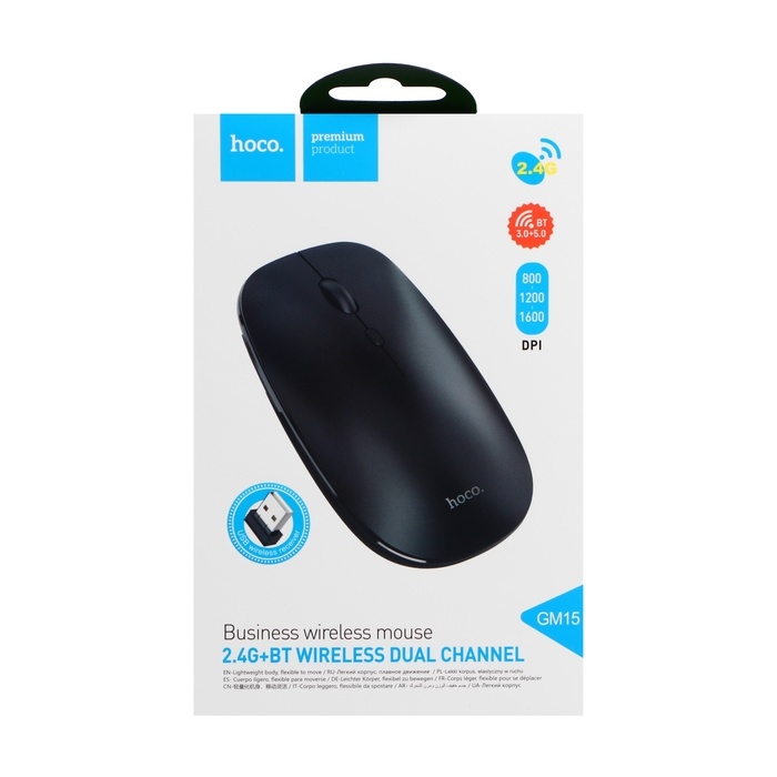 Мышь Hoco GM15, беспроводная (2.4 + BT), оптическая, 800-1200-1600 dpi, черная