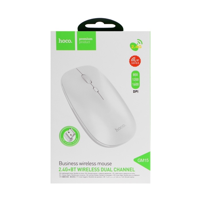 Мышь Hoco GM15, беспроводная (2.4 + BT), оптическая, 800-1200-1600 dpi, белая