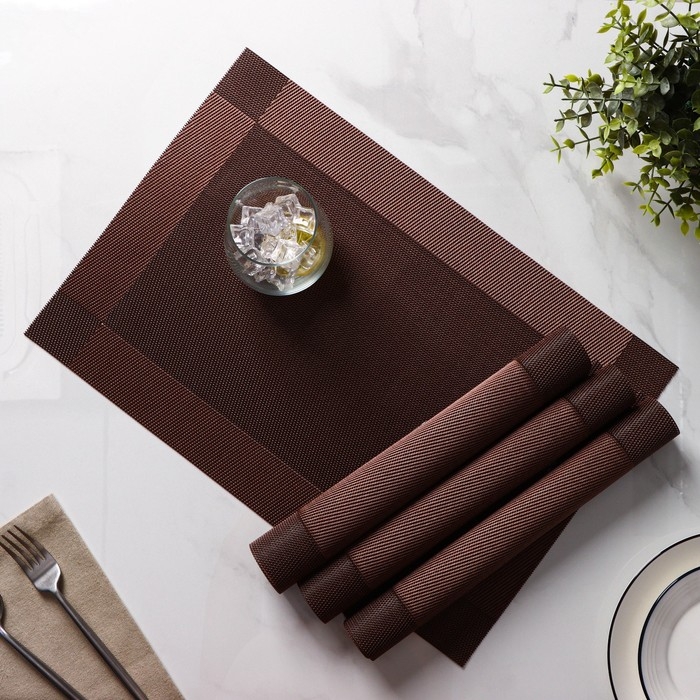 Салфетки сервировочные на стол Доляна «Шахматы», 45×30 см, 4 шт, цвет коричневый