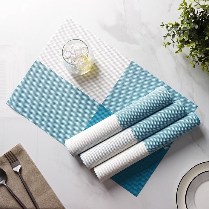 Салфетки сервировочные на стол Доляна «Настроение», 4 шт, 45×30 см, цвет бело-синий