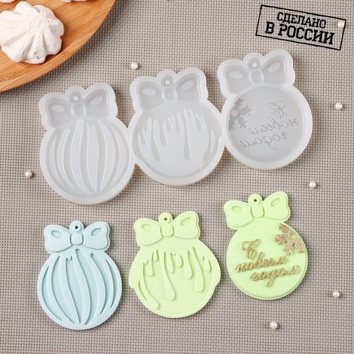 Силиконовая форма «Ёлочные игрушки», 3 шт, цвет прозрачный