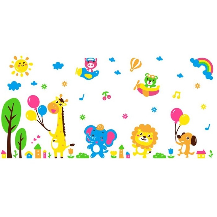 Наклейки интерьерные "Зверята", детские, декор на стену, панно 200 х 96 см