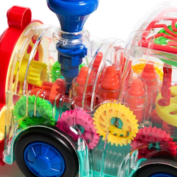 Паровоз «Шестерёнки» — это яркая интерактивная игрушка, которая увлечёт вашего ребёнка с первых минут. Паровозик оснащён ярким свечением и музыкальным сопровождением, что делает игру с ним ещё более захватывающей. Прозрачный корпус позволяет наблюдать за движением шестерёнок, что помогает малышу познакомиться с принципами работы механизмов.