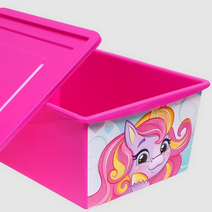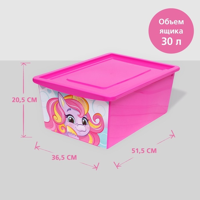 Ящик для игрушек с крышкой, «Радужные единорожки», объём 30 л, цвет маджента