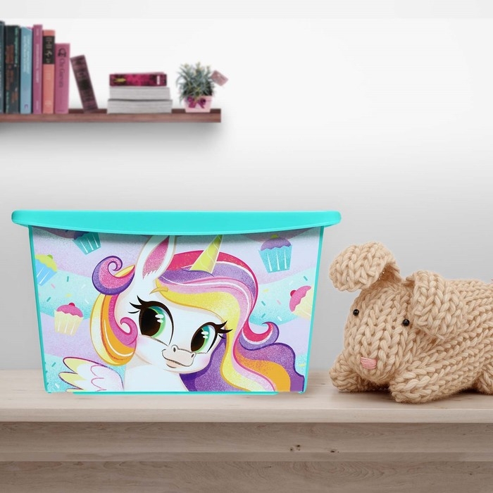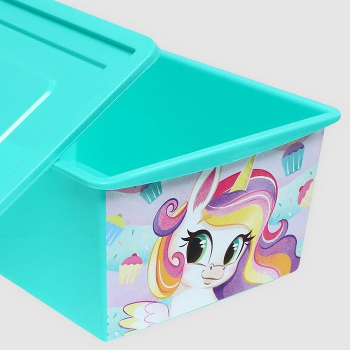 Ящик для игрушек с крышкой, «Радужные единорожки», объём 30 л, цвет бирюзовый