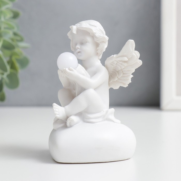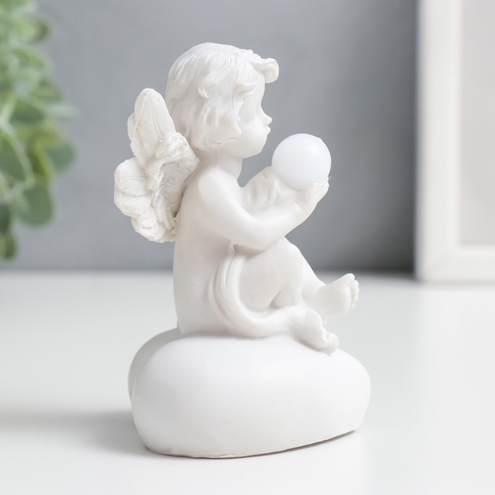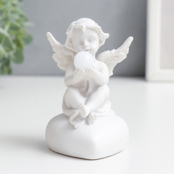Сувенир полистоун свет "Белоснежный ангел на сердце с огоньком" 9х5,5х5,7 см