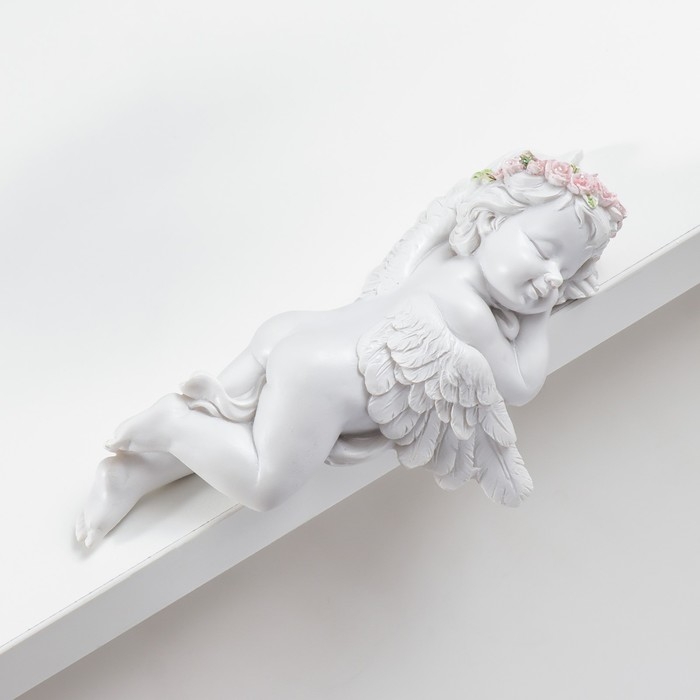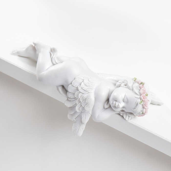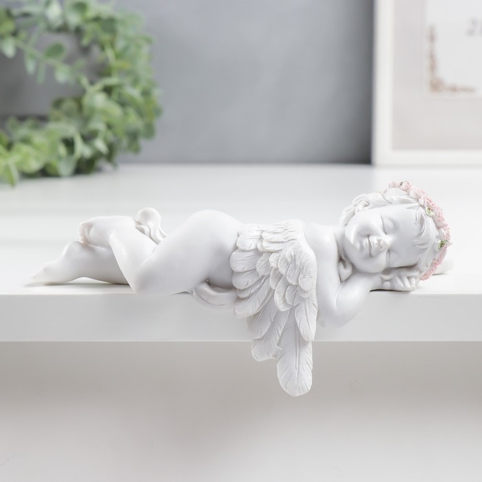 Сувенир полистоун "Спящий белоснежный ангел с венком" 7,5х16,5х6,5 см