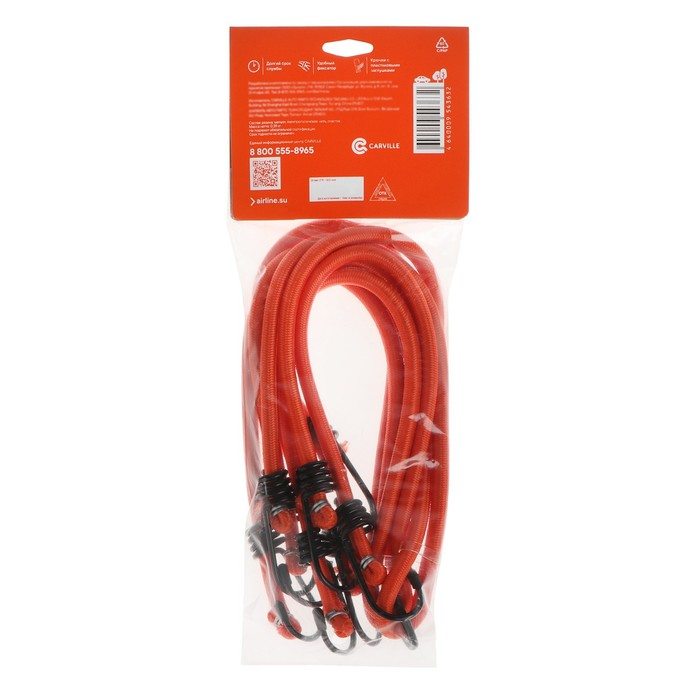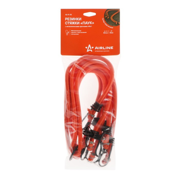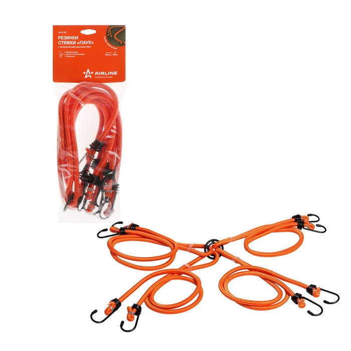 Резинка для крепления багажа Airline "Паук", 80 см, d8 мм, металлические крючки, набор 4 шт