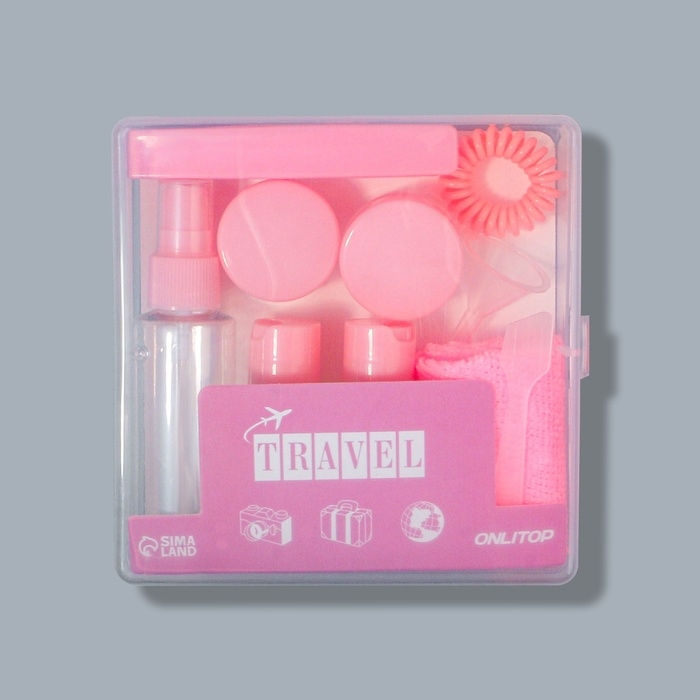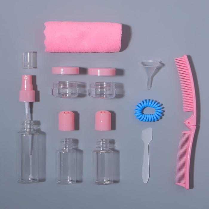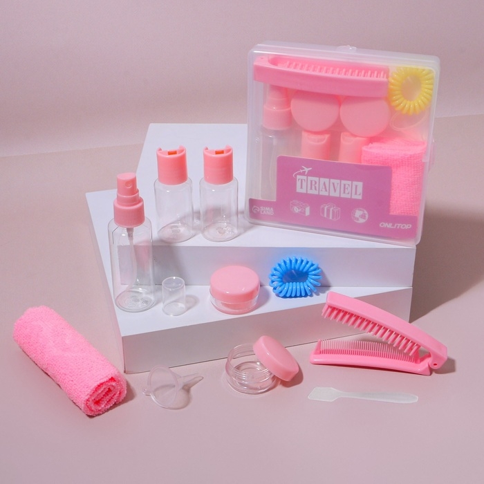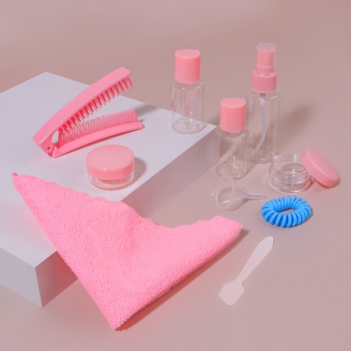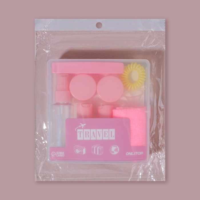 Набор для хранения, в чехле, 9 предметов, цвет прозрачный/розовый