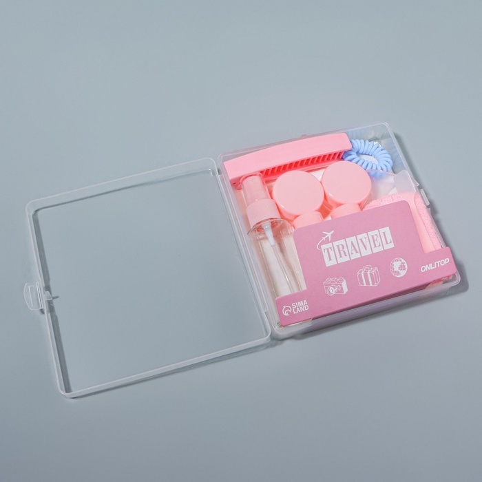 Набор для хранения, в футляре, 9 предметов, цвет прозрачный/розовый
