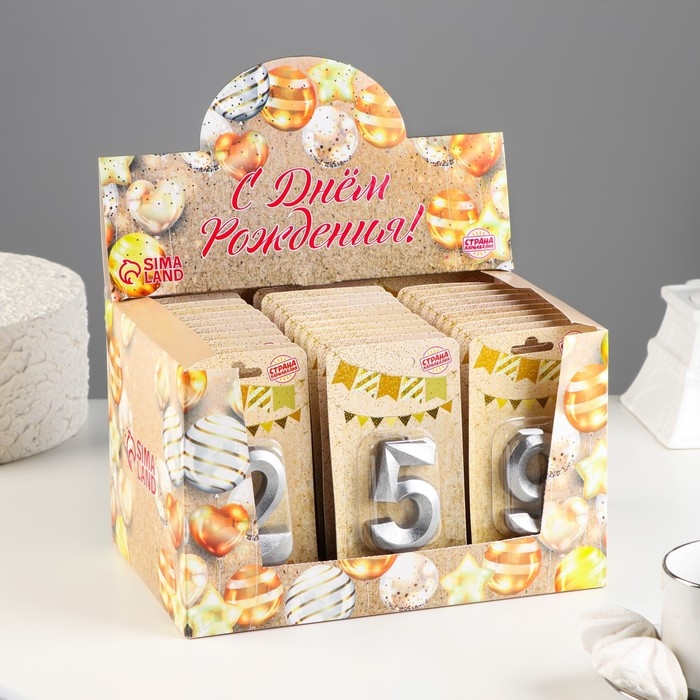 Шоу-бокс со свечами для торта "Грань", серебро, 30 шт, 8 см