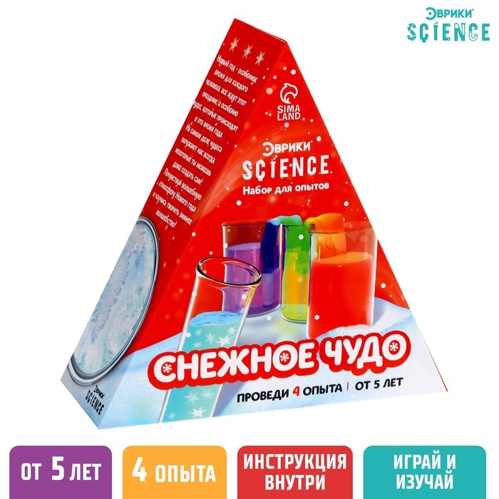 С набором для опытов «Эврики» ребёнок узнает об удивительных свойствах веществ, проведёт 4 новогодних опыта и удивит друзей.