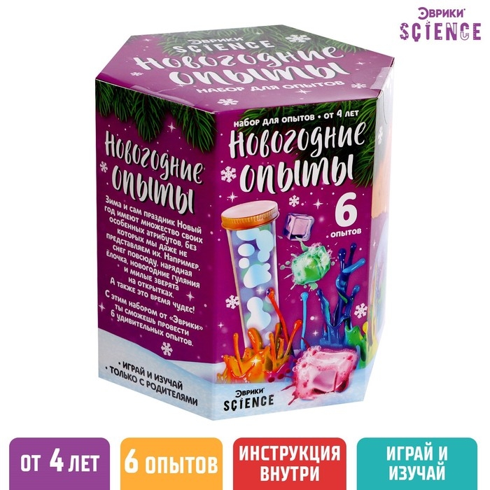 С набором для опытов «Эврики» ребёнок узнает об удивительных свойствах веществ, проведёт 6 новогодних опытов и поразит друзей.