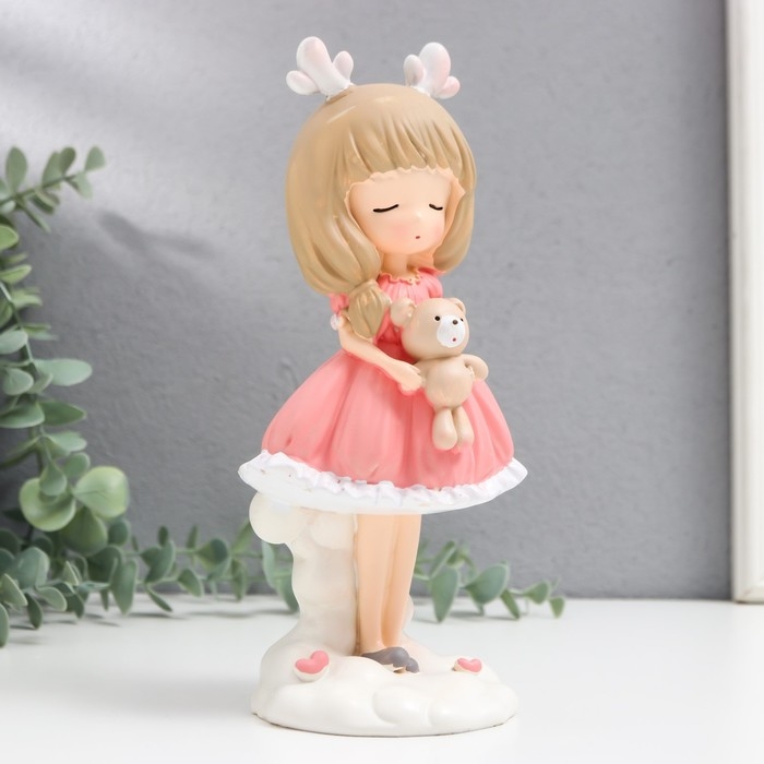 Сувенир полистоун "Девочка с оленьими рожками и мишкой в руках" МИКС 8х9,5х20,5 см