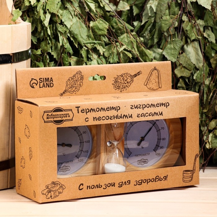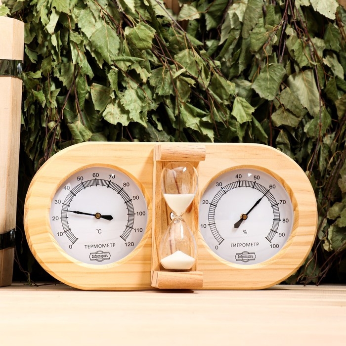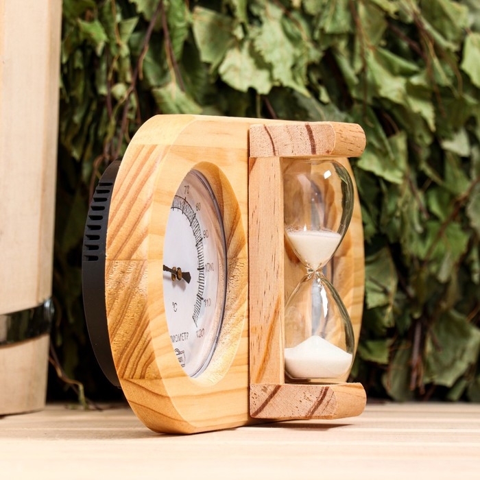 Термометр-гигрометр для бани с песочными часами, деревянный