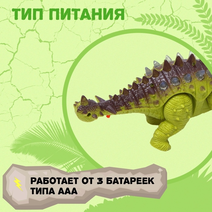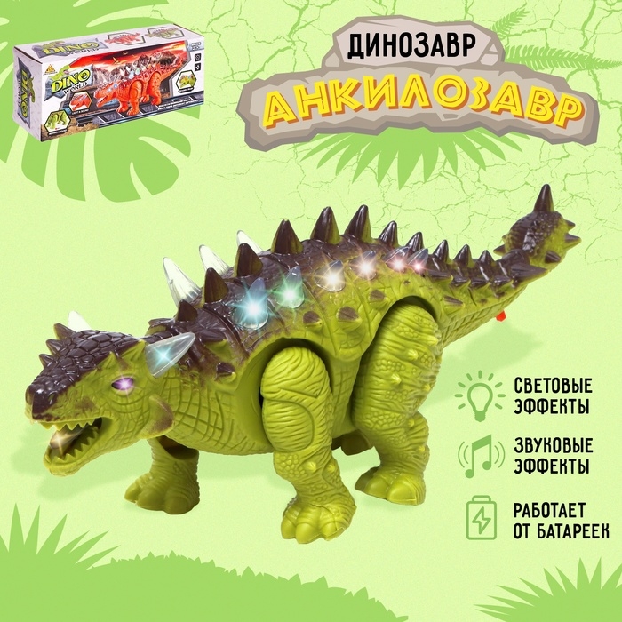 Динозавр «Анкилозавр» работает от батареек, световые и звуковые эффекты, цвет зелёный