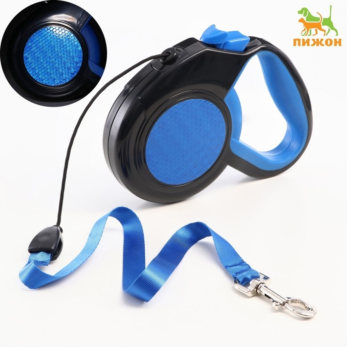 Рулетка "Пижон" светоотражающая, 8 м, до 50 кг, трос, прорезиненная ручка, голубая