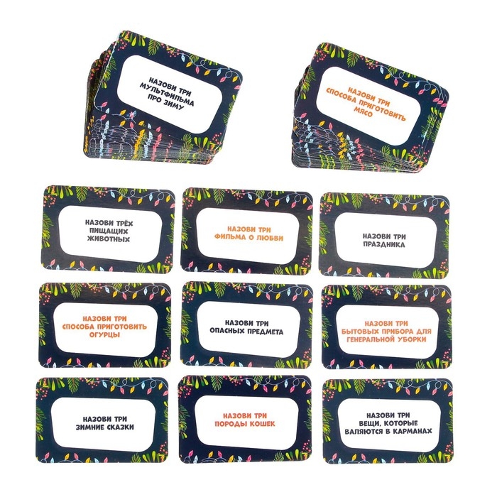 Разложите игровое поле, поставьте фишки на клетку «Старт». Первый из игроков переворачивает таймер с шариками. За это время, а это ровно 5 секунд, нужно дать ответ на вопрос или выполнить весёлое задание с карточки. Победит тот, кто первым дойдёт до финиша. Весёлой игры!