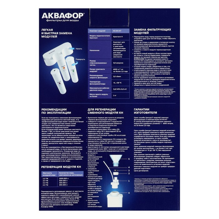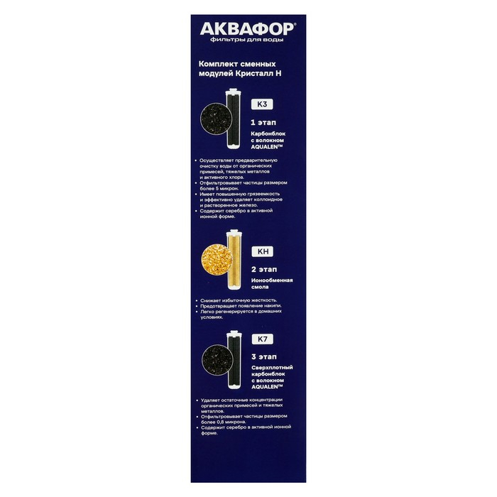 Комплект сменных картриджей для "Аквафор" Кристалл, К3-КН-К7, фильтрующий