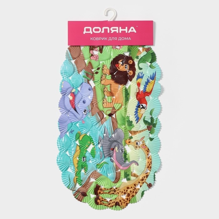 Коврик противоскользящий в ванну на присосках Доляна «Звери Африки», 36×67 см