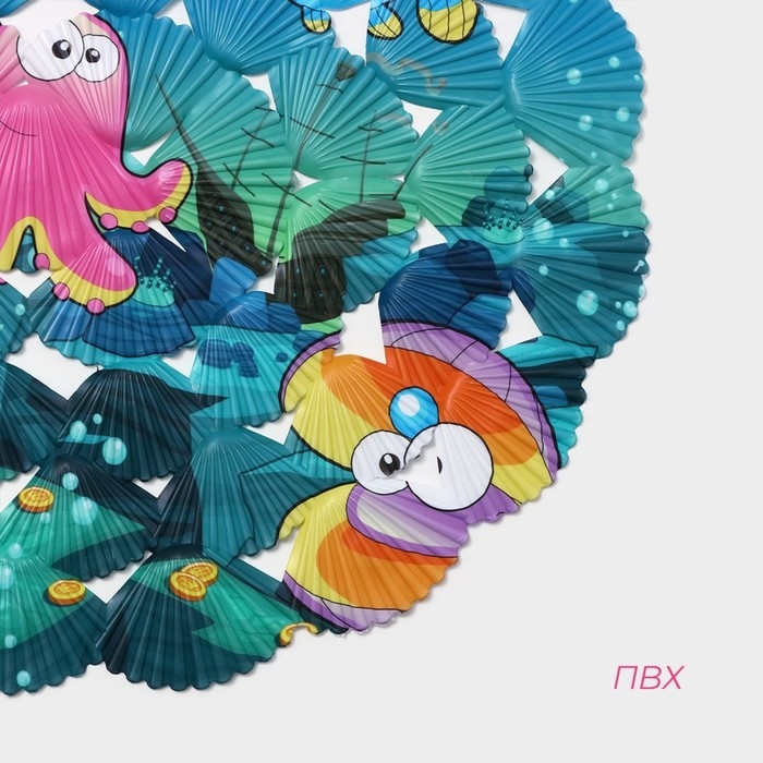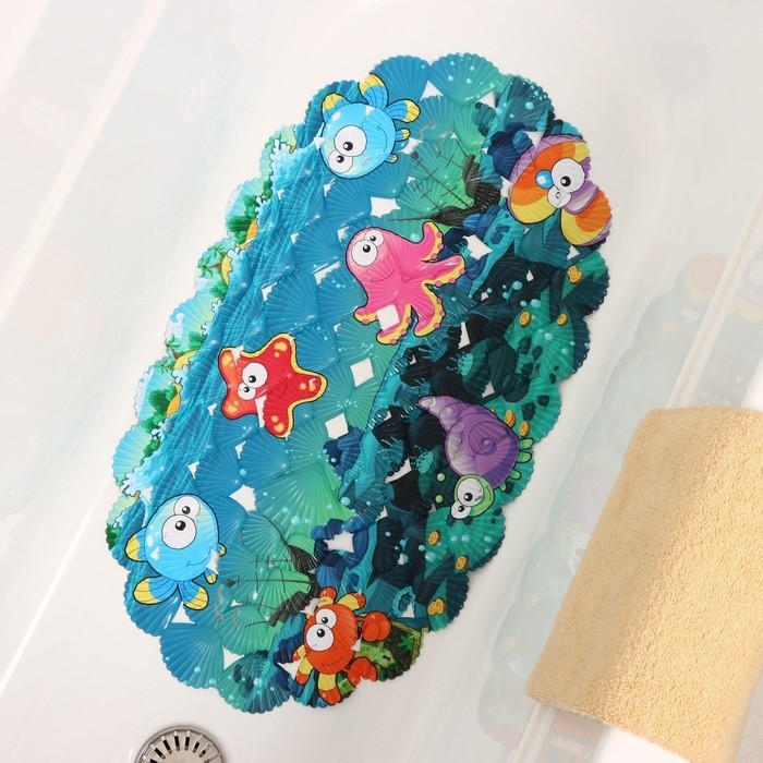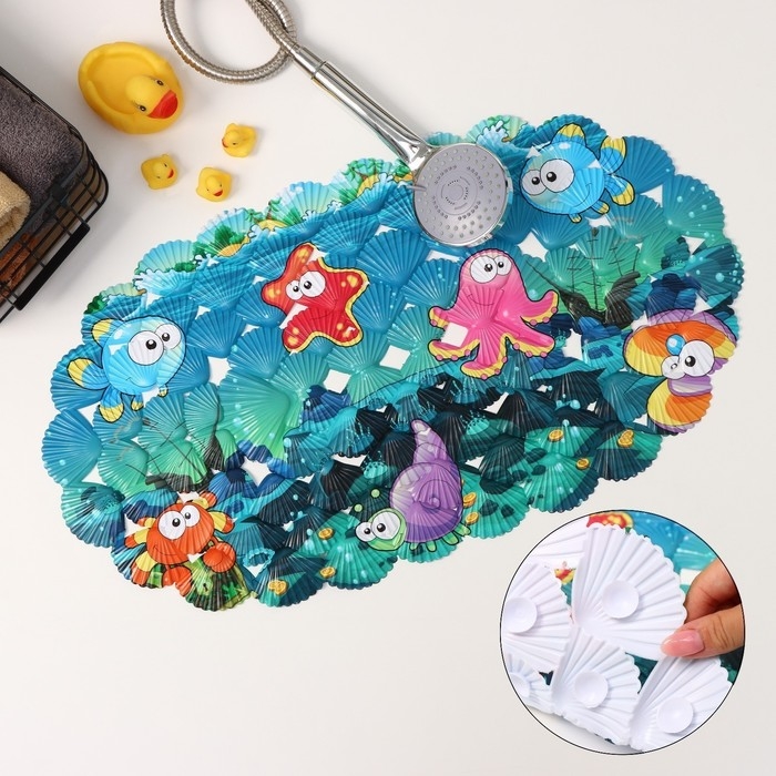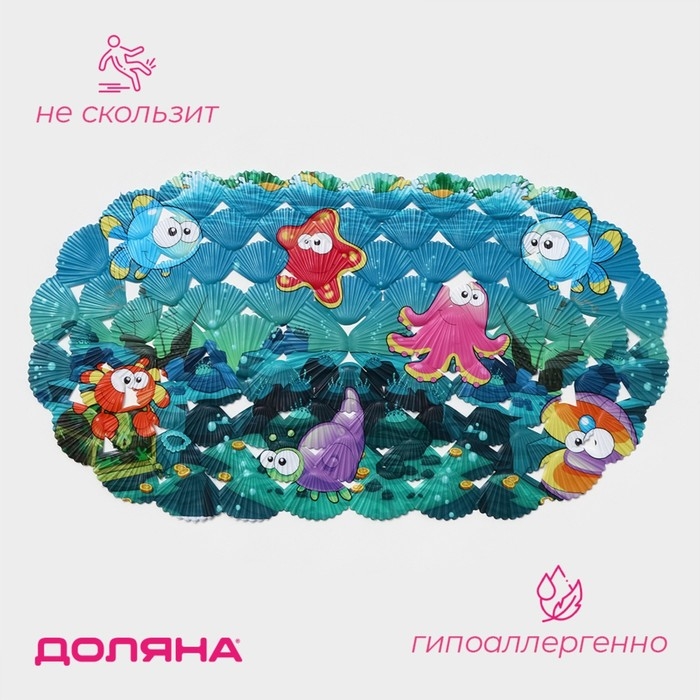 Коврик противоскользящий в ванну на присосках Доляна «Морские жители», 36×67 см