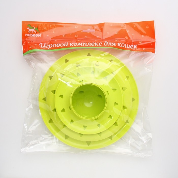 Игровой комплекс "Пижон" для кошек с 3 шариками, 24,5 х 24,5 х 13 см, зелёный