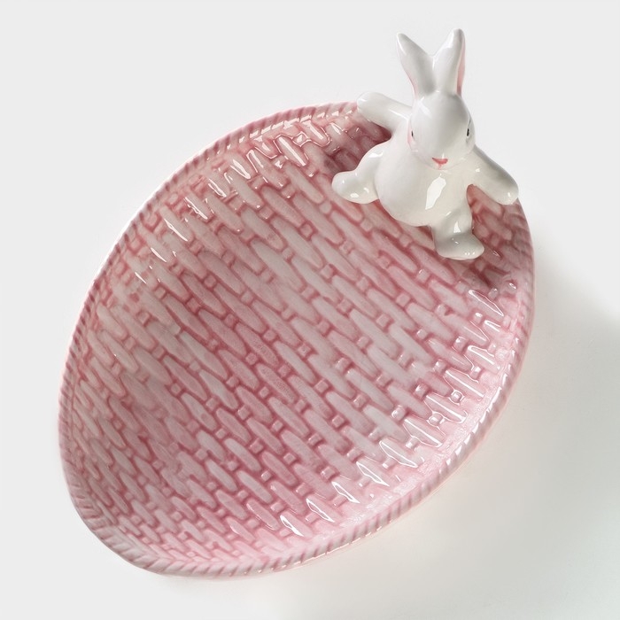 Блюдо сервировочное Доляна «Зайка», 26×19,5×10,5 см, цвет розовый