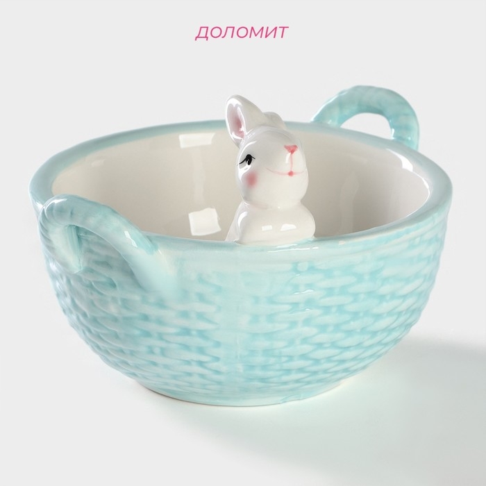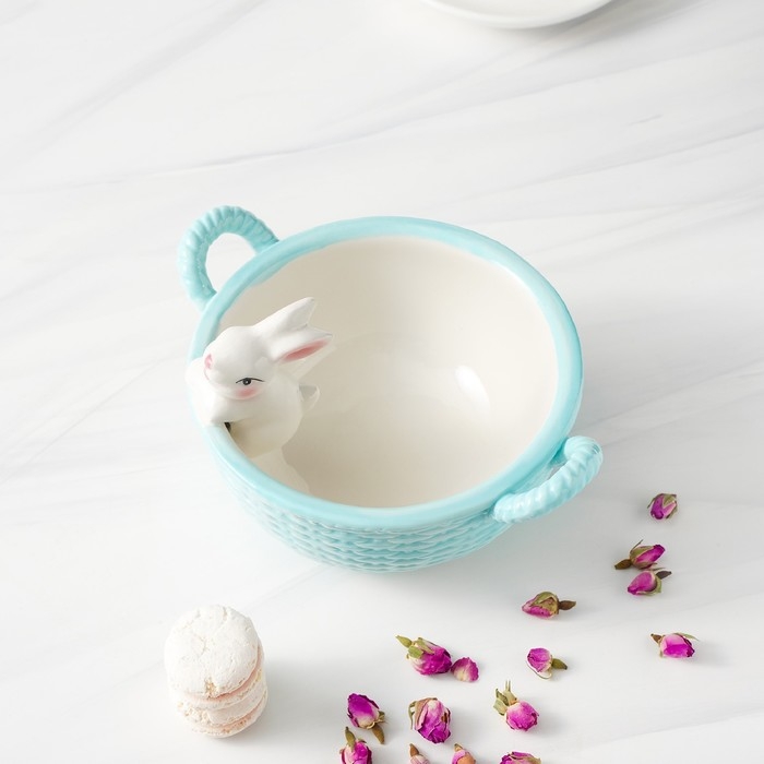 Конфетница Доляна «Зайка», 19,5×16,5×12,5 см, цвет голубой