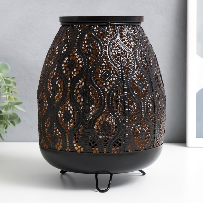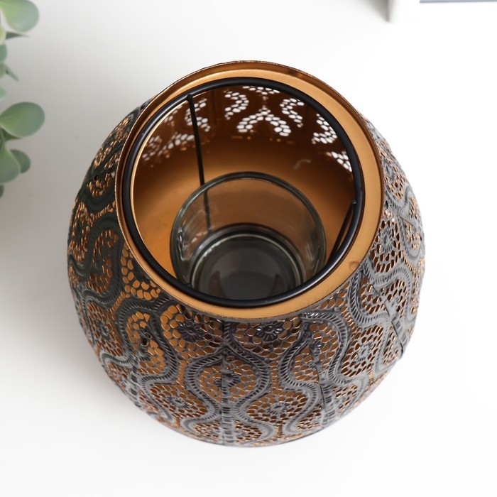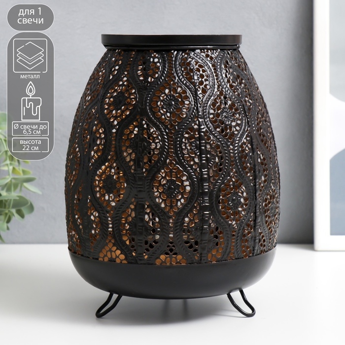 Подсвечник металл на 1 свечу "Арабская ночь" чёрный с золотом 22х15,5х15,5 см