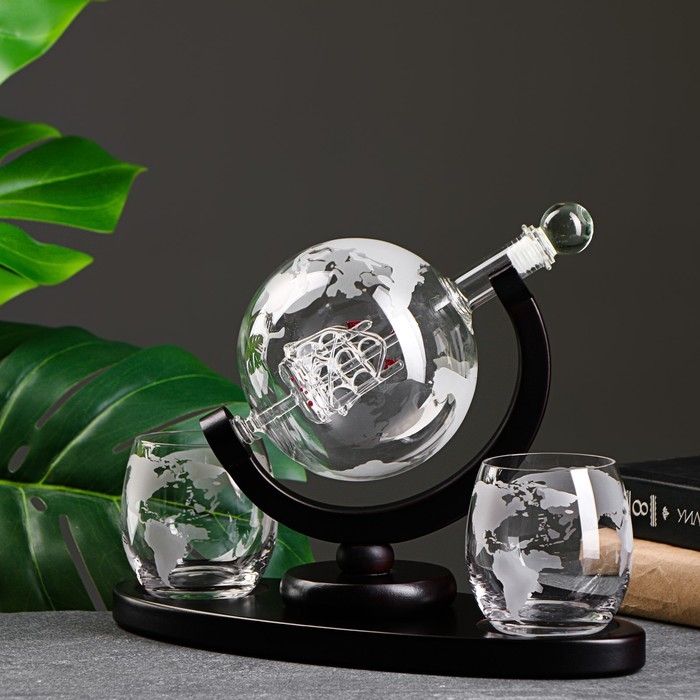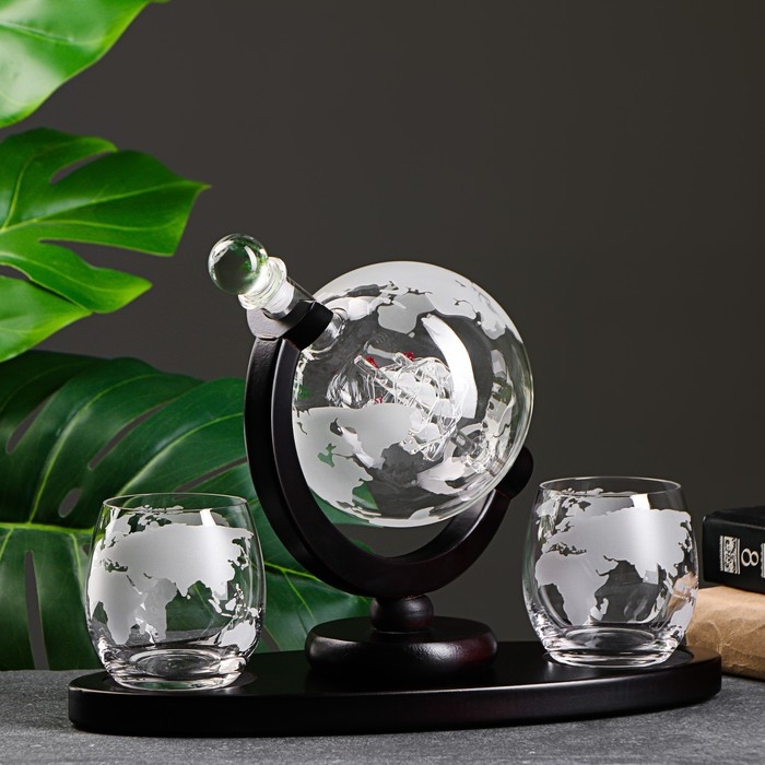 Мини-бар 1 графин, 2 бокала, на деревянной подставке, графин 850 мл, бокалы 300 мл