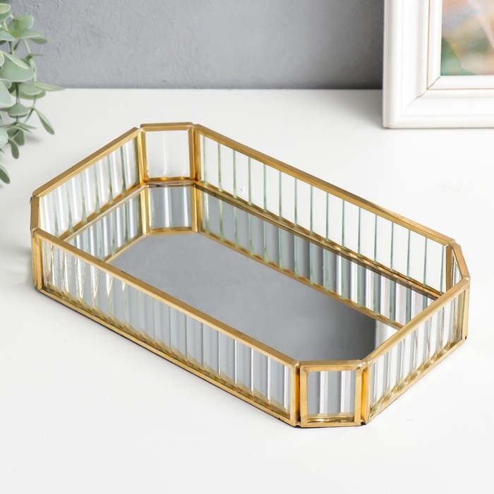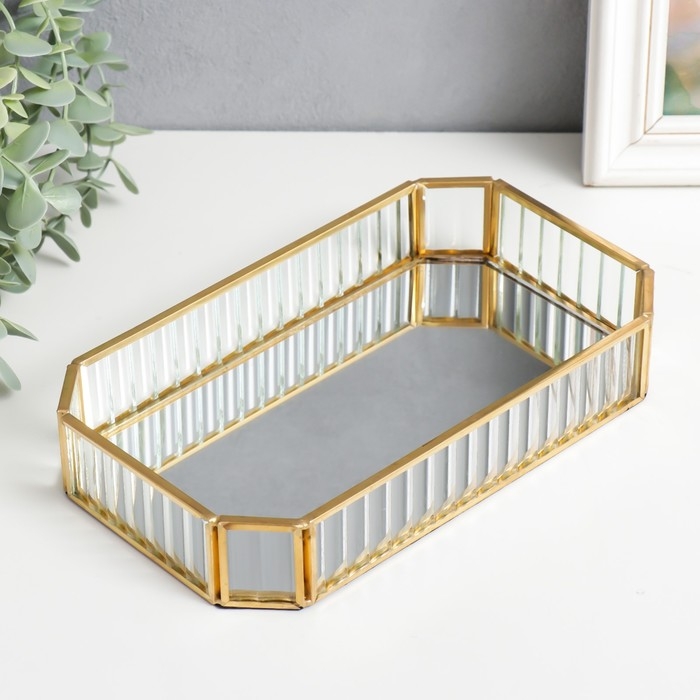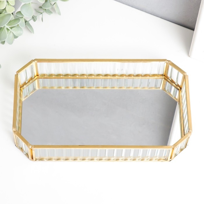 Подставка интерьерная стекло с зеркалом фигурная "Волна" 4х13,5х23 см