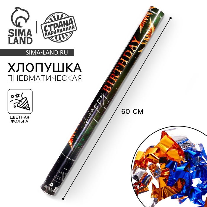 Хлопушка пневматическая Happy birthday 60 см