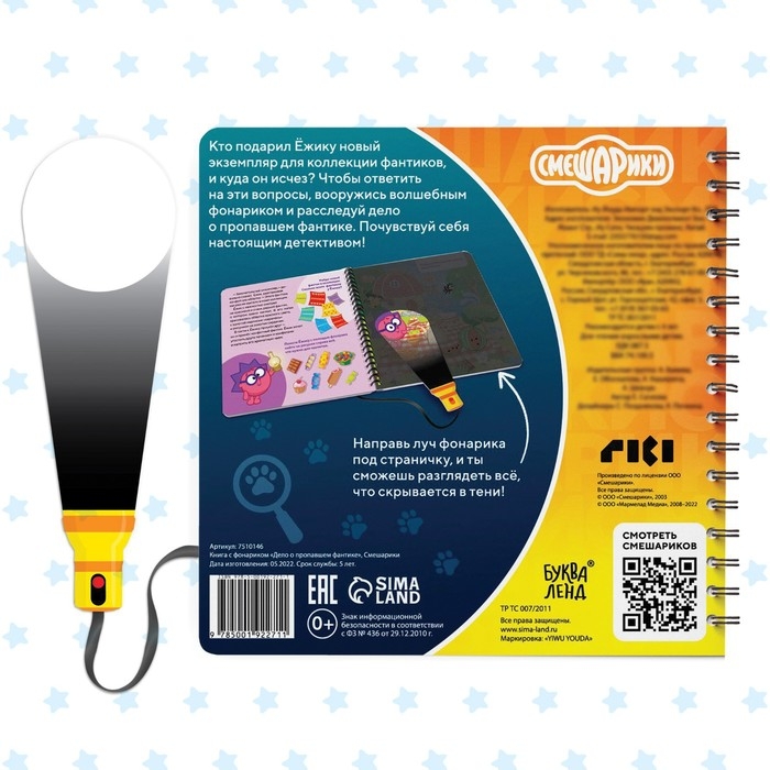 Книга с фонариком «Дело о пропавшем фантике», 22 стр., 5 игровых разворотов, Смешарики