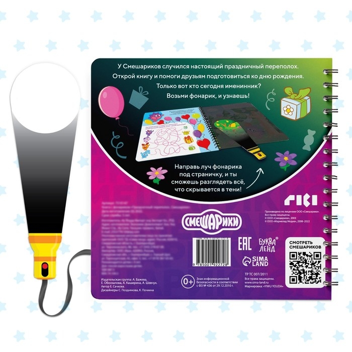 Книга с фонариком «Праздничный переполох», 22 стр., 5 игровых разворотов, Смешарики