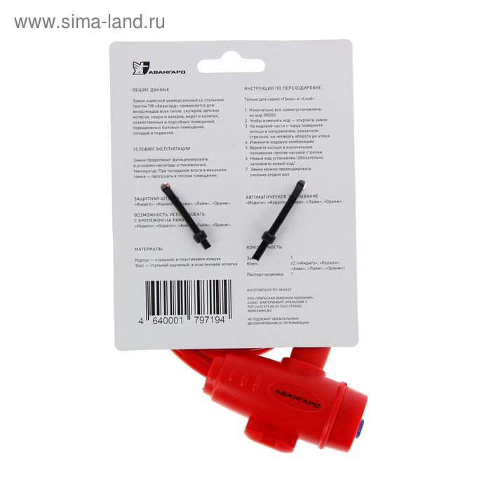 Замок навесной "АВАНГАРД" ВС-Т10 Техно Коралл, с тросом, 1000 мм